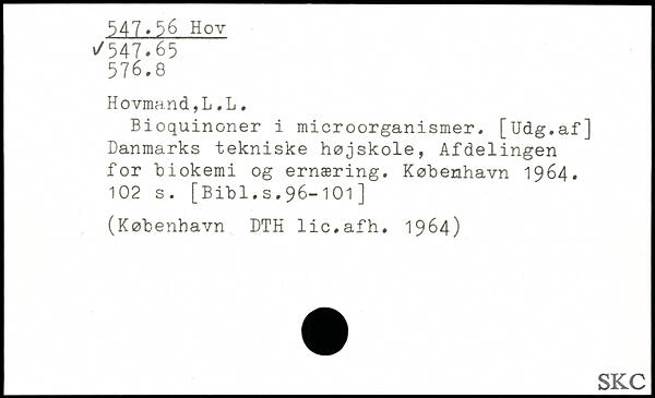 Bioquinoner i mieroorganismer, [Udg.af] Danmarks tekniske højskole, Afdelingen for biokemi og ernæring.