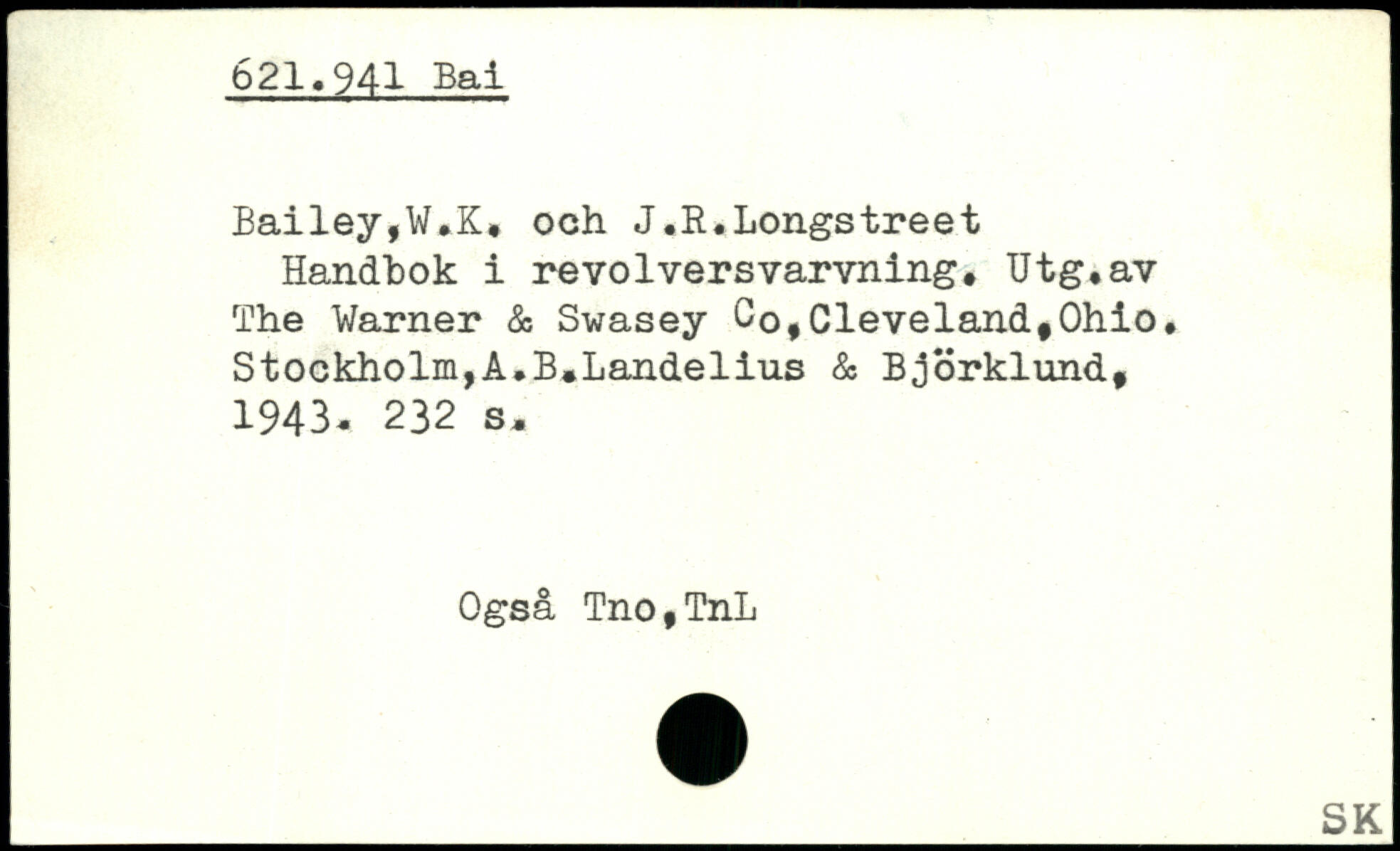 Bailey,W.K, ooh J.R.Longstreet Handbok i revoIversvärvning. Utg.av The Warner & Swasey Co,Cleveland,Ohio. Stockholm,A.B.Landelius & Björklund, 1943-