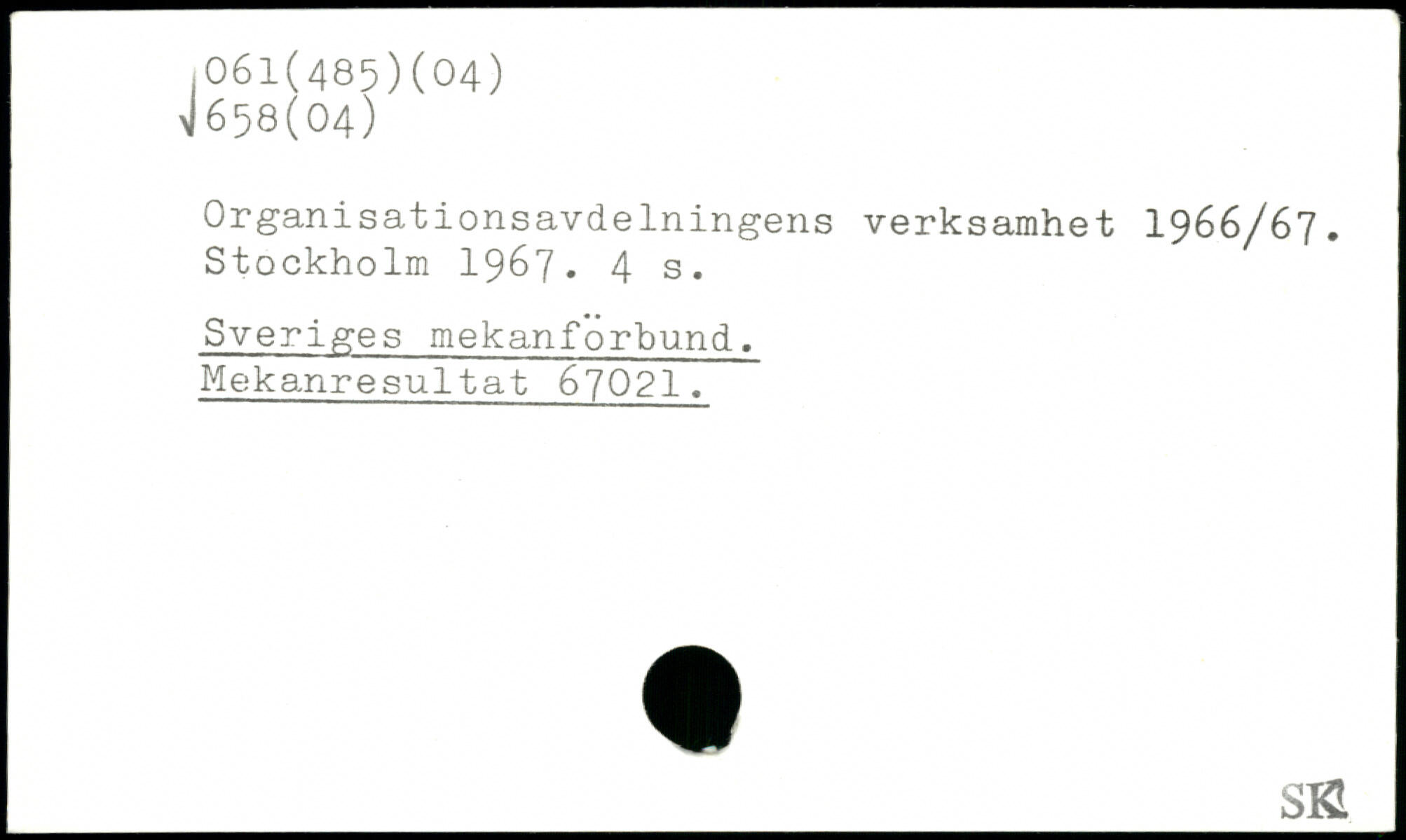 Organisationsavdelningens verksamhet 1966/67.