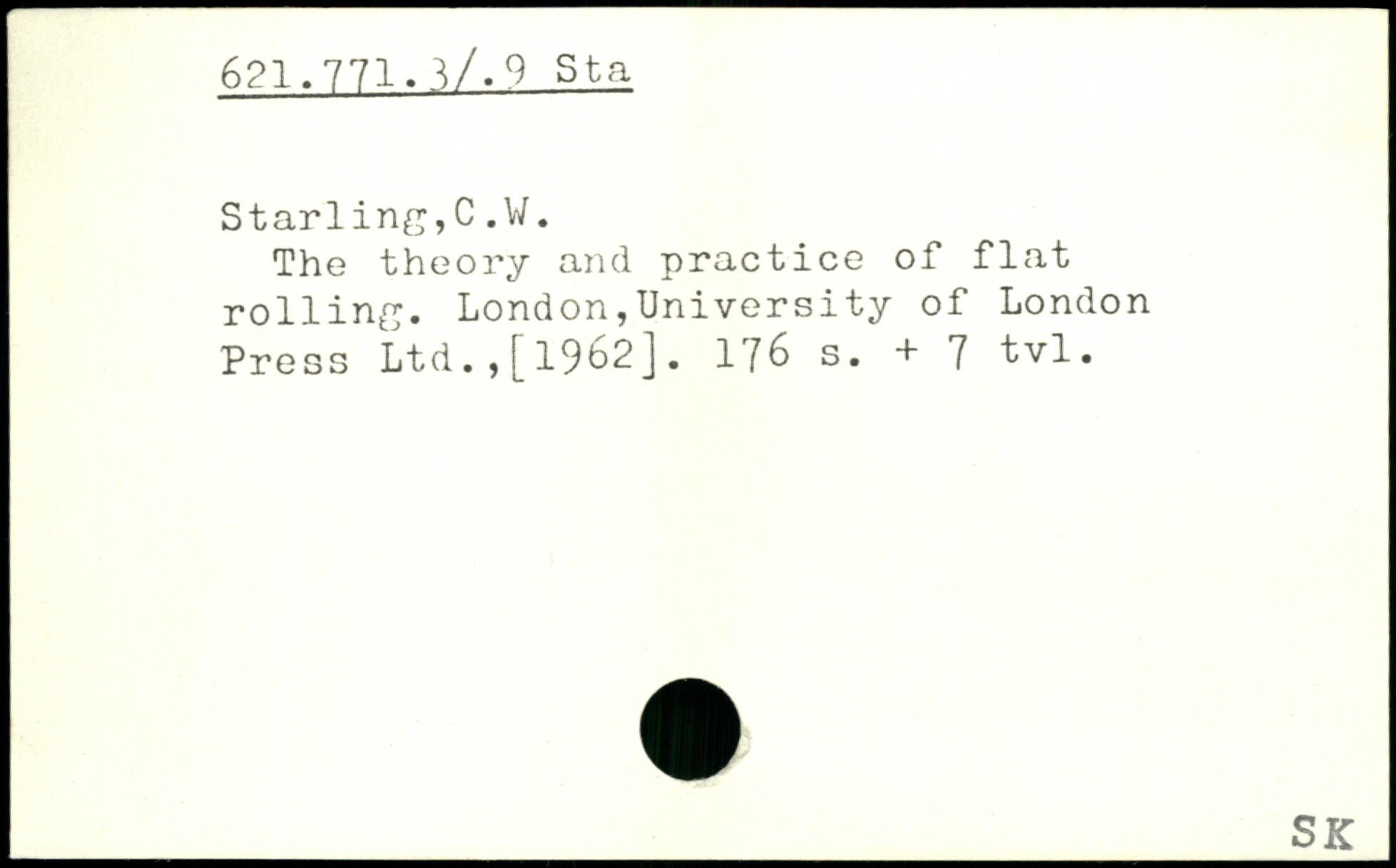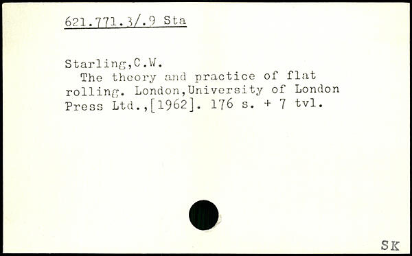 The theory and practice of flat rolling. London,University of London Press Ltd., [1962]. l/