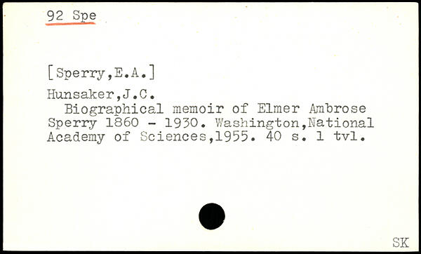 Biographical memoir of Elmer Ambrose Sperry 1860 - 1930