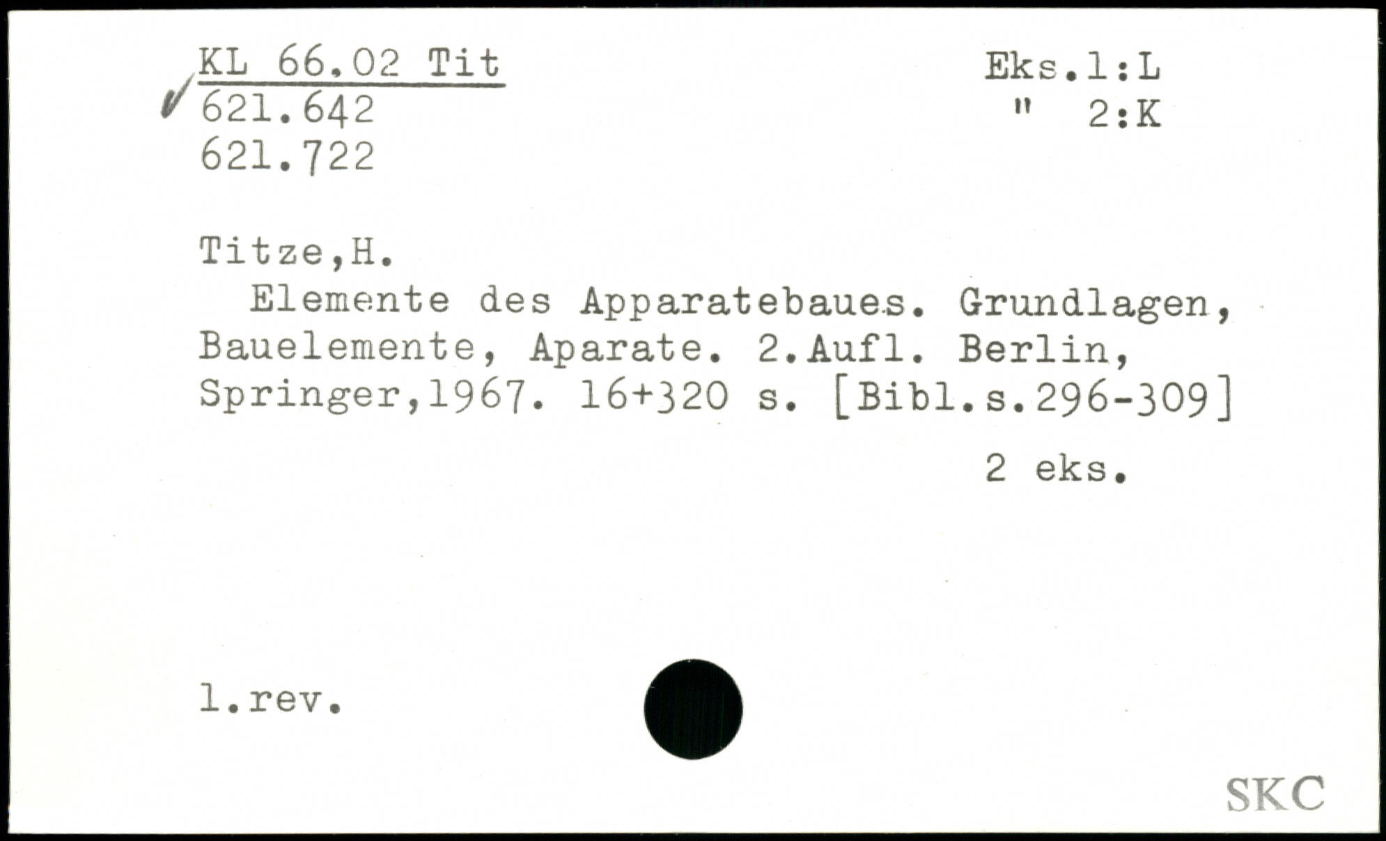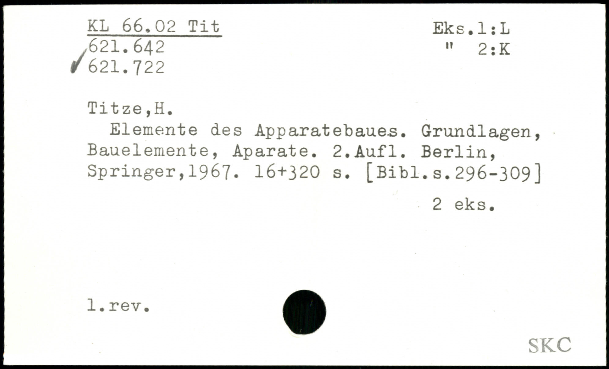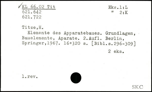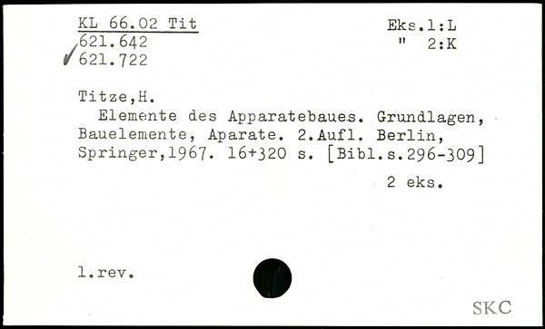 Elemente des Apparatebaues. Grundlagen, Bauelemente, Aparate.