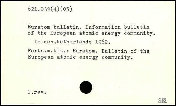 Euratom bulletin. Information bulletin of the European atomic energy community. Leiden,Netherlands 1962. Forts.m.tit.! Euratom. Bulletin of the European atomic energy community.