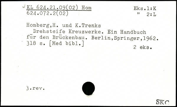 Homberg,H. und K.Trenks ^Drehsteife Kreuzwerke. Ein Handbuch für den Brückenbau.