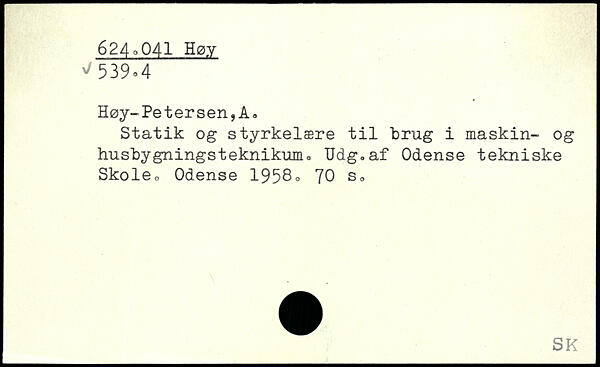 Statik og styrkelære til brug i maskin- og husbygningsteknikumo Udg,af Odense tekniske Skole. Odense 1958.
