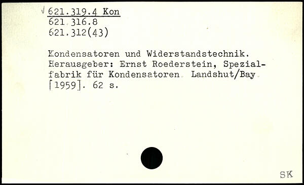 Kondensatoren und Widerstandstechnik. Herausgeber: Ernst Roederstein, Spezial-i'abrik für Kondensatoren Landshut/Bay r1959].