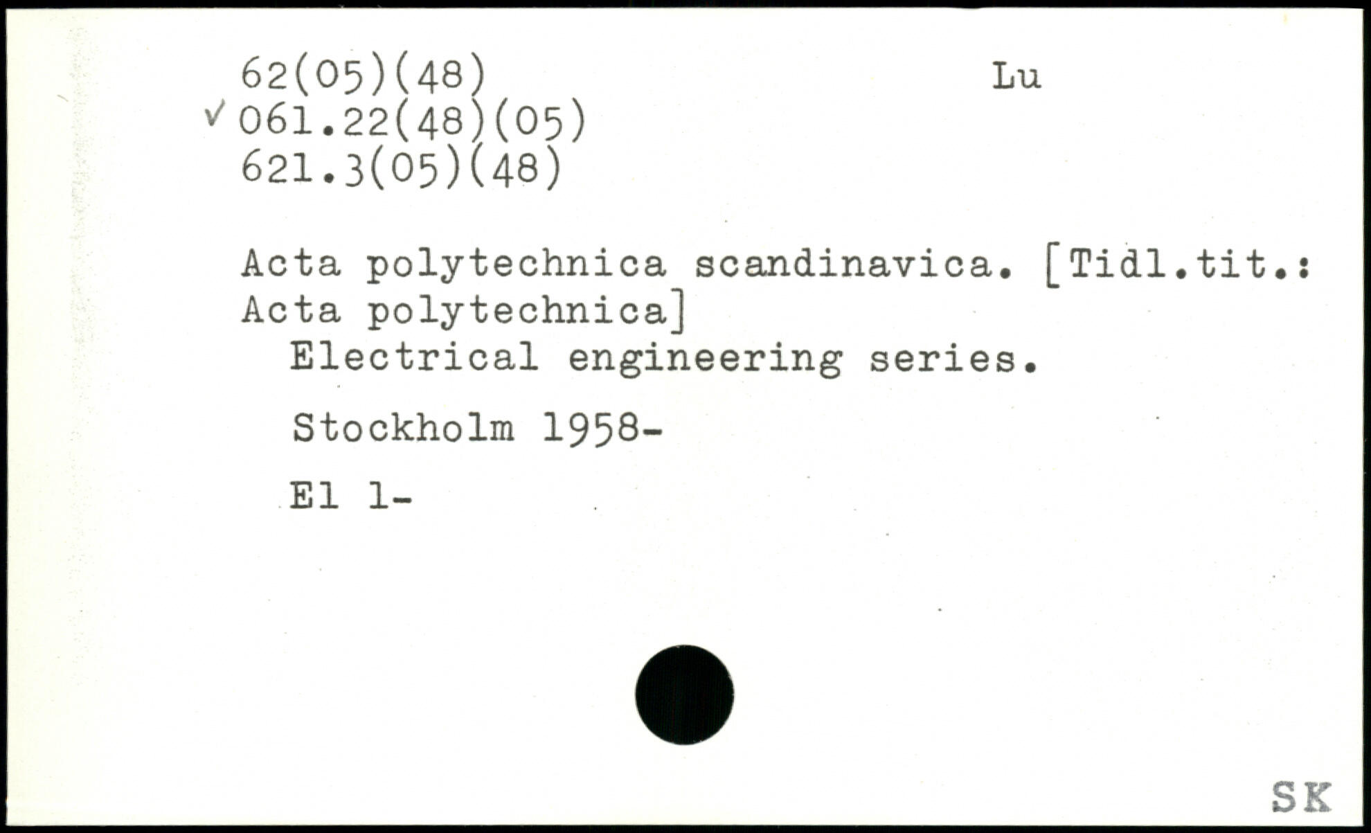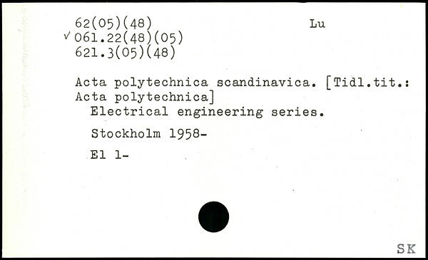 Acta polytechnica scandinavica. [Tidl.tit.: Acta polytechnica] Electrical engineering series.