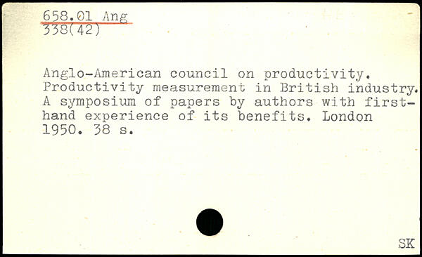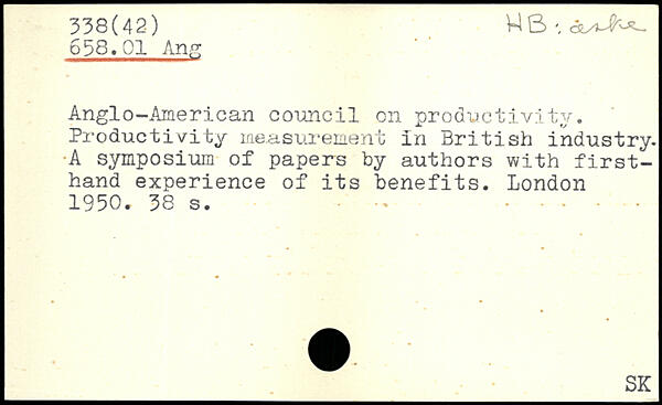Anglo-American council on productivity. Productivity measurement in British industry. A symposium of papers by authors with firsthand experience of its benefits.