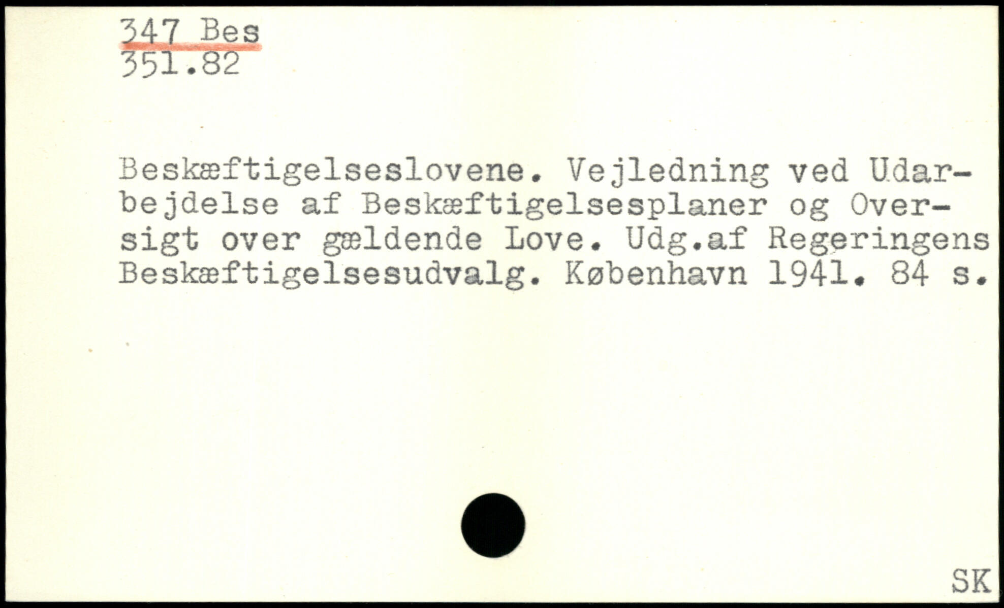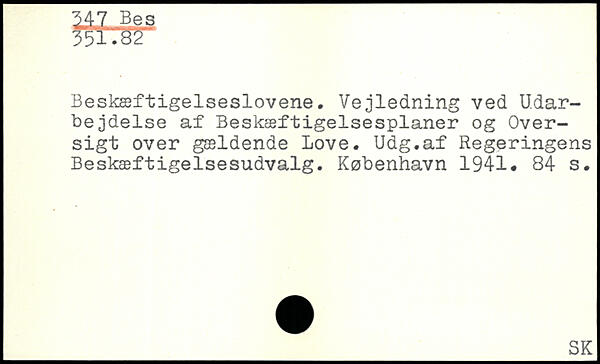 Beskæftigelseslovene, Vejledning ved Udarbejdelse af Beskæftigelsesplaner og Oversigt over gældende Love. Udg.af Regeringens Beskæftigelsesudvalg.