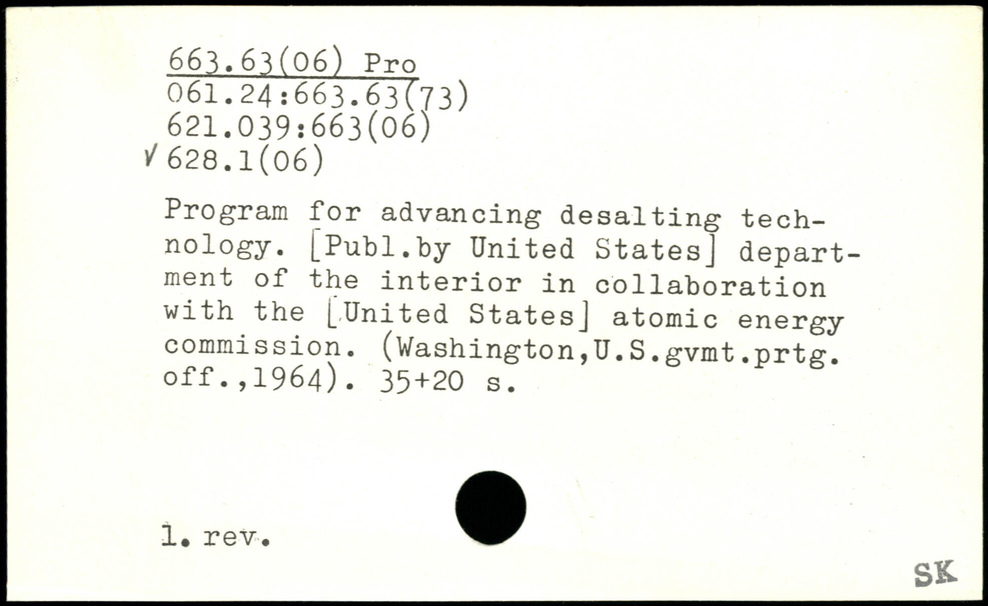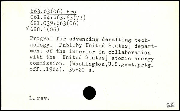 Program for advancing desalting technology. [Publ.hy United States] department of the interior in collaboration with the [United States] atomic energy commi s sion. (Washington,U.S.gvmt.prtg. off.,1964).