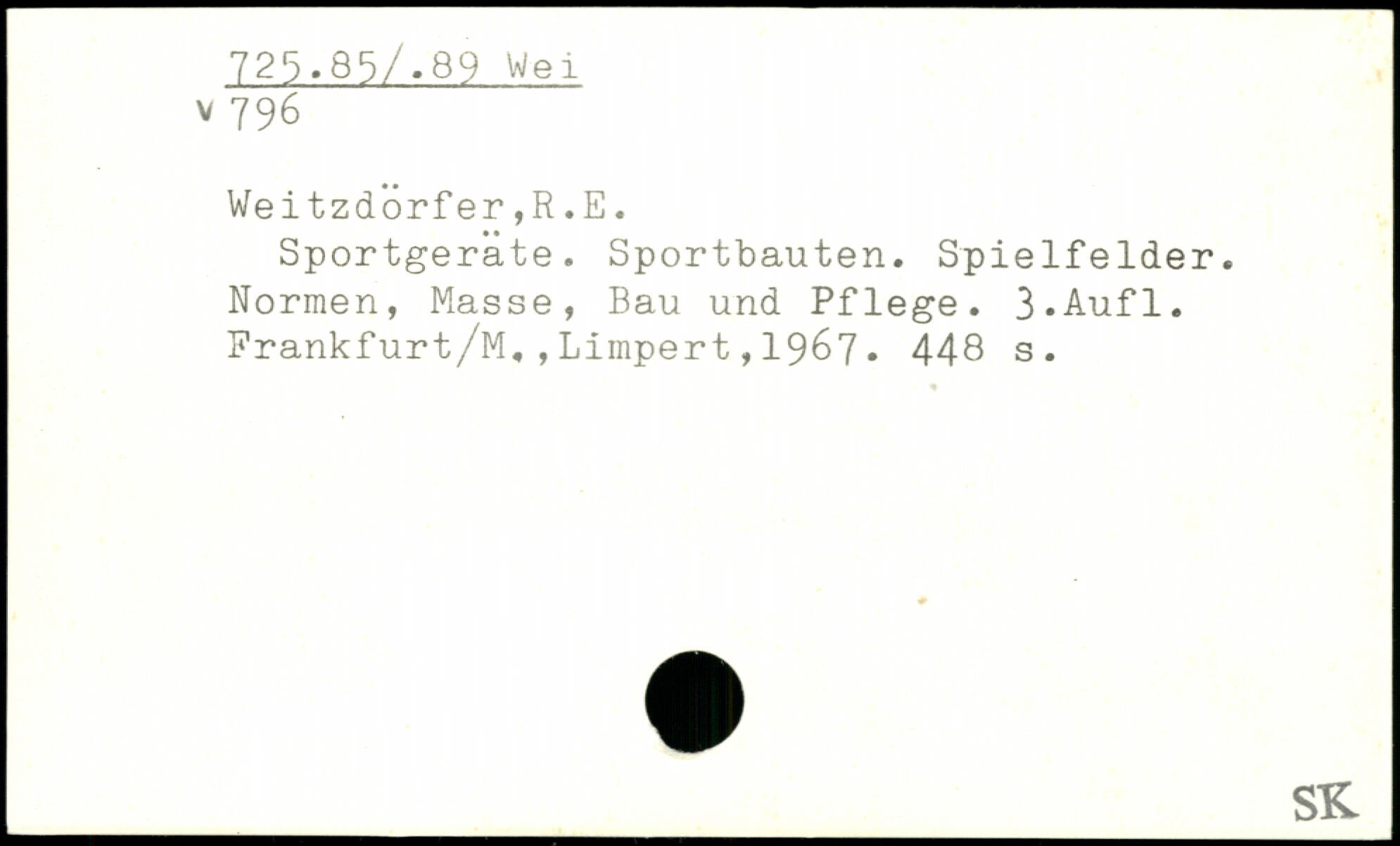 Sportgeräte. Sportbauten. Spielfelder. Normen, Masse, Bau und Pflege.