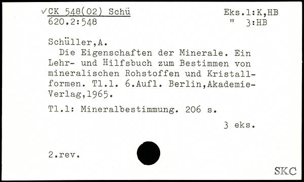 Die Eigenschaften der Minerale. Ein Lehr- und Hilfsbuch zum Bestimmen von mineralischen Rohstoffen und Kristallformen. Tl.l.