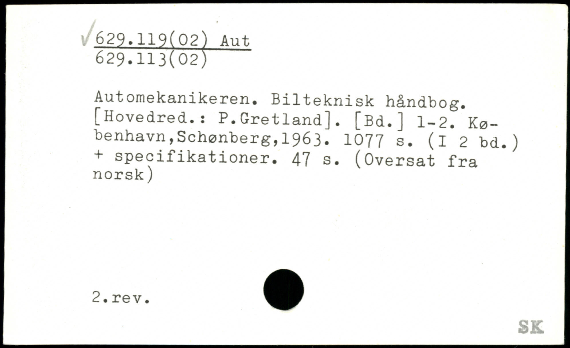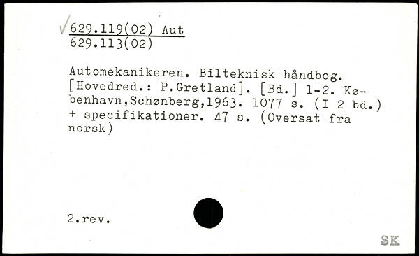 Automekanikeren. Bilteknisk håndbog. [Hovedred.: P.Gretland]. [Bd.] 1-2.