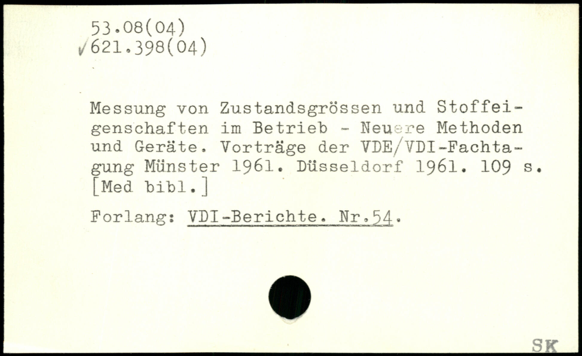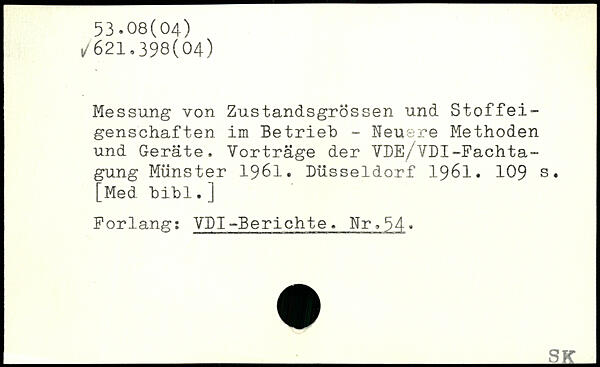 Messung von Zustandsgrössen und Stoffeigenschaften im Betrieb - Neuere Methoden und Geräte. Vorträge der VDE/VDI-Fachtagung Münster 1961. Düsseldorf 1961.