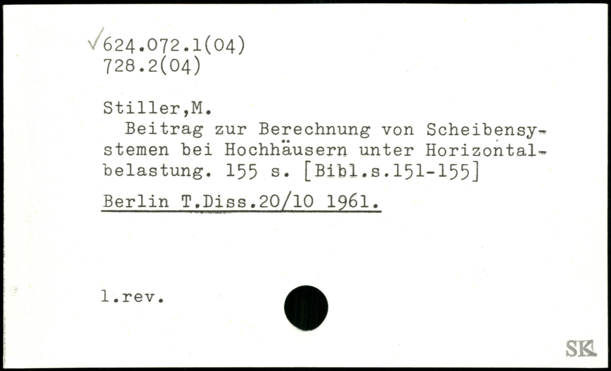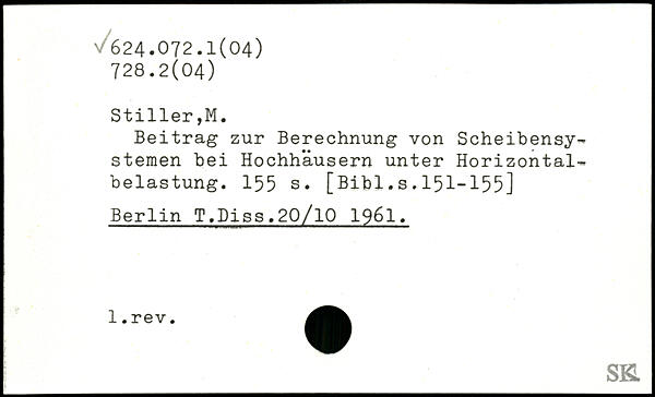 Beitrag zur Berechnung von Scheibensy-stemen hei Hochhäusern unter Horizontalbelastung.