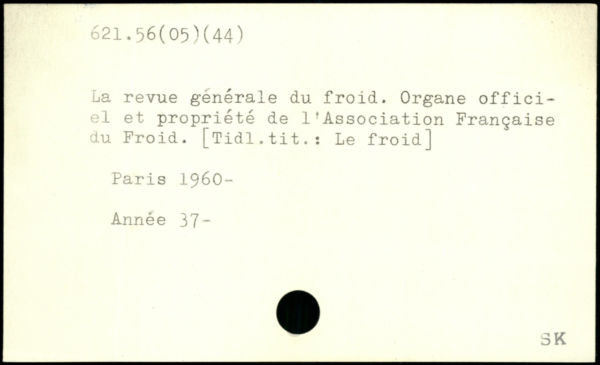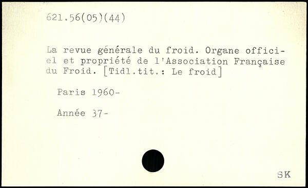 La revue générale du froid. Organe officiel et propriété de 1 Association Française du Froid. [Tidl.tit.ï Le froid]