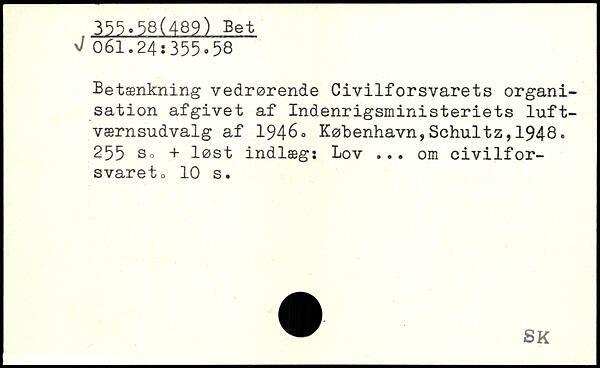 Betænkning vedrørende Civilforsvarets organisation afgivet af Indenrigsministeriets luftværnsudvalg af 19460