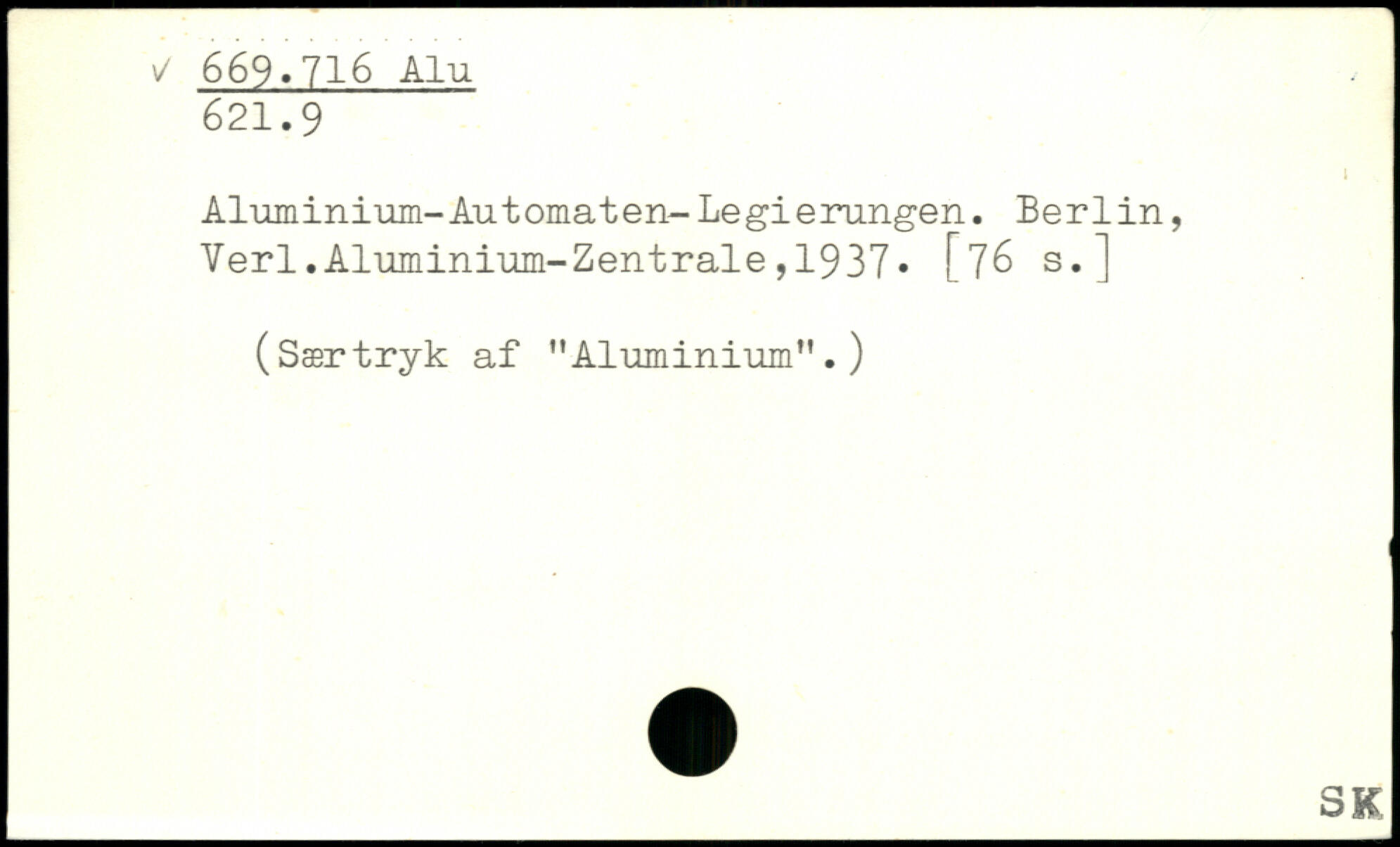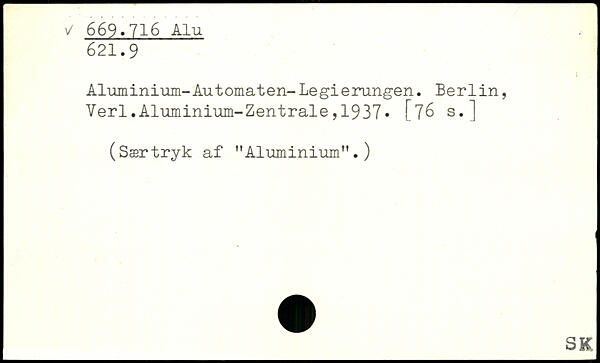 Aluminium-Automaten-Legierungen. Berlin, Verl.Aluminium-Zentrale,1937. [