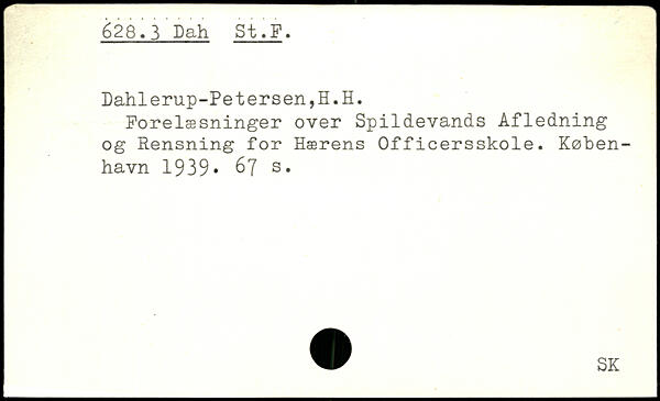 Forelæsninger over Spildevands Afledning og Rensning for Hærens Officersskole.