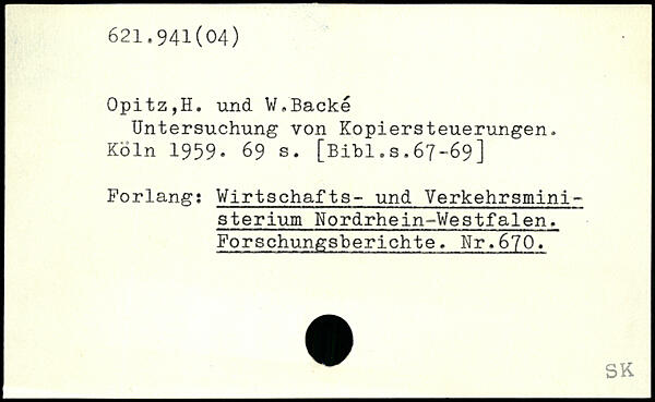 Forfatter: H. Opitz, W. Backe