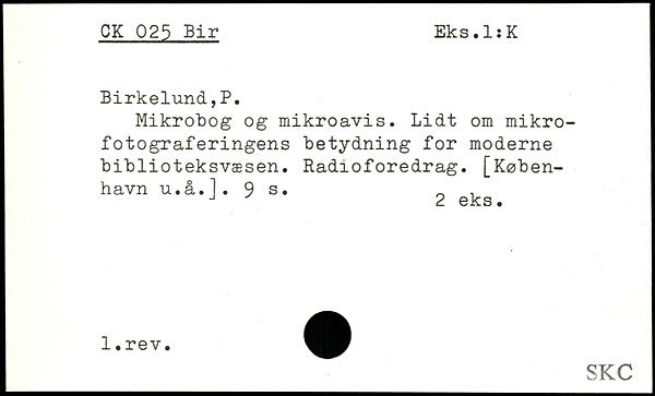 Mikrobog og mikroavis. Lidt om mikro-fotograferingens betydning for moderne biblioteksvæsen. Radioforedrag. [København ti.å.].