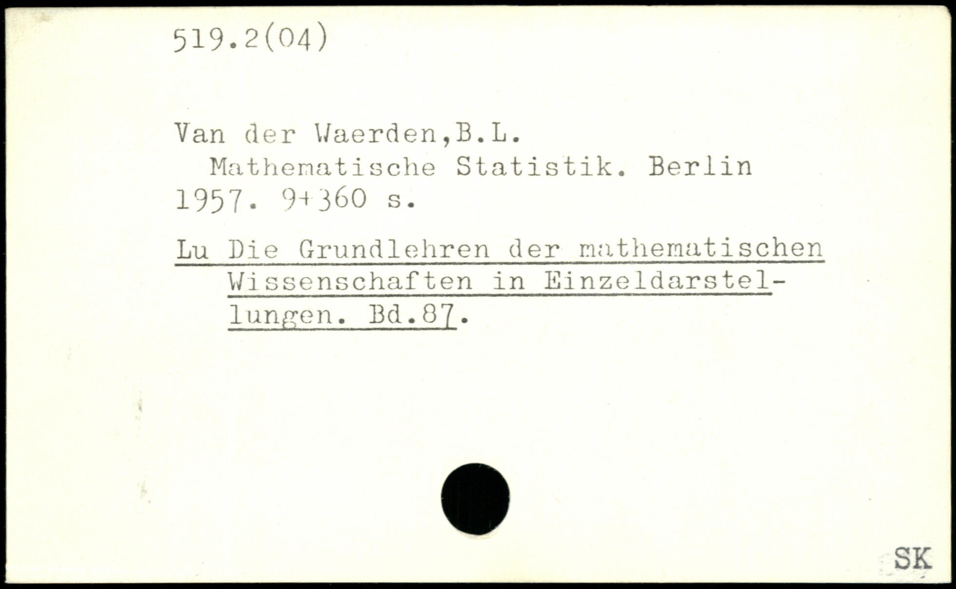 Van der Waerden,B.L. Mathematische Statistik.