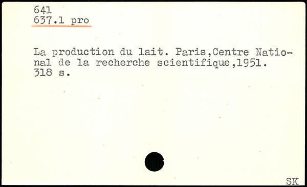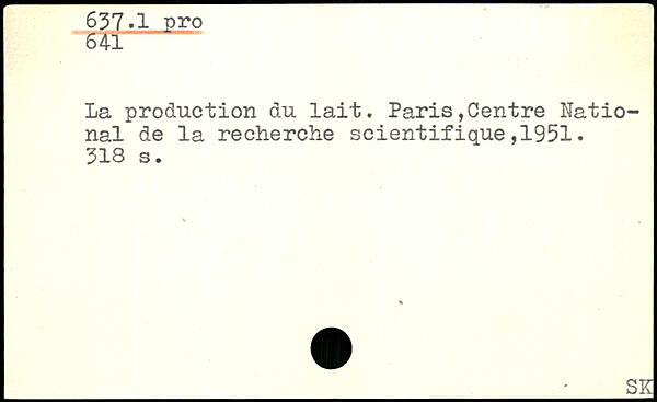 La production du lait. Paris,Centre National de la recherche scientifique,1951.