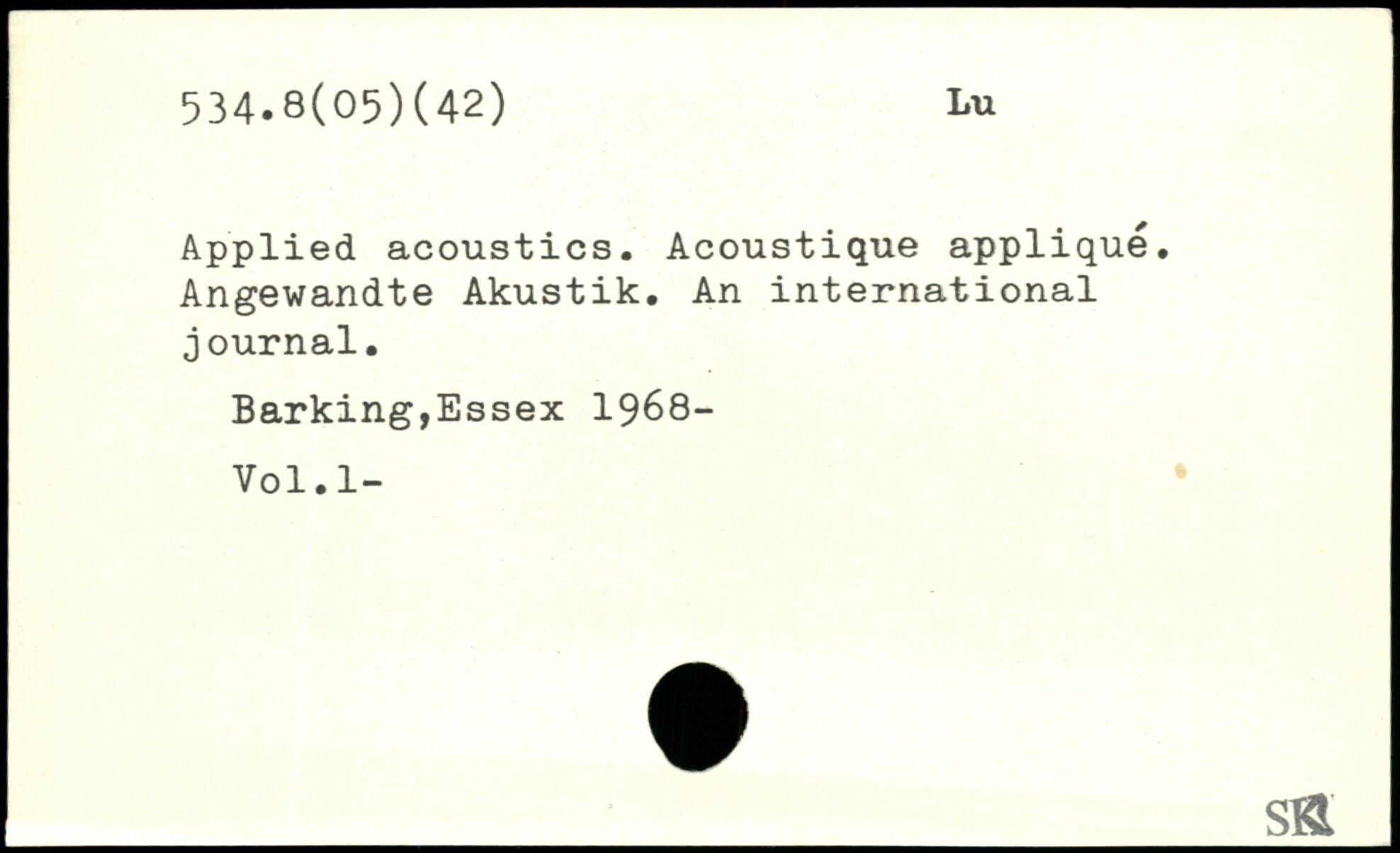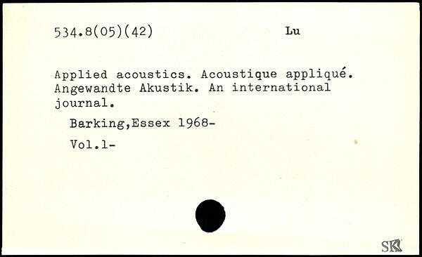 Applied acoustics. Acoustique applique. Angewandte Akustik. An international journal. Barking,Essex 1968-Vol.l- _sa