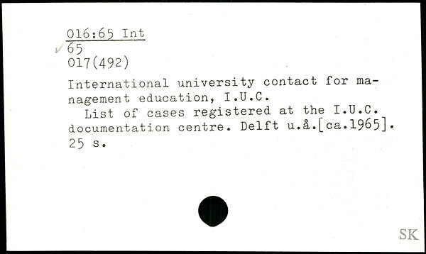 International university contact for management education, I.U.C. List of cases registered at the I.U.C. documentâtion centre. Delft u.a.[ca.l9^5].