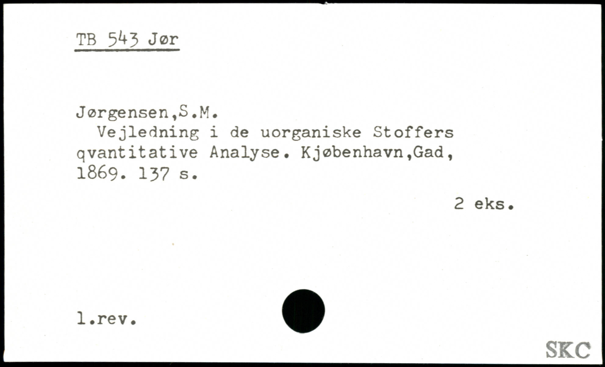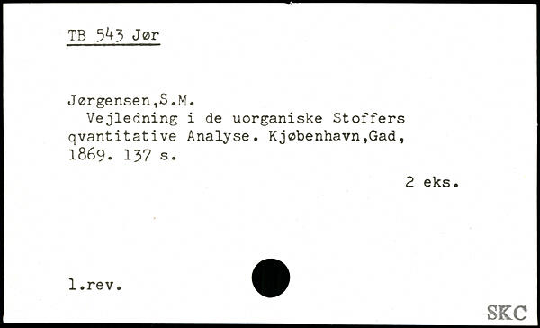 TB 5^3 Jer Jørgensen,S.M. Vejledning i de uorganiske Stoffers qvantitative Analyse.