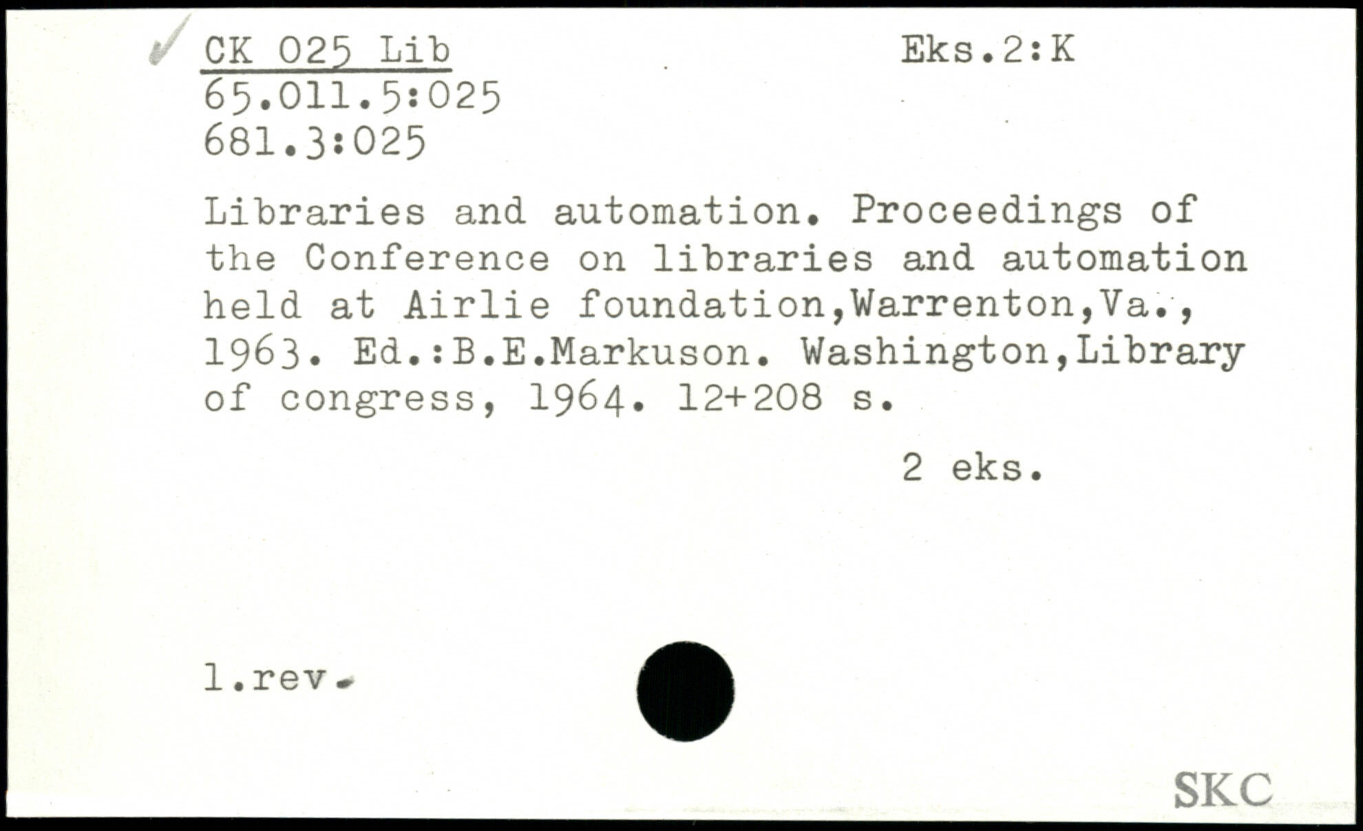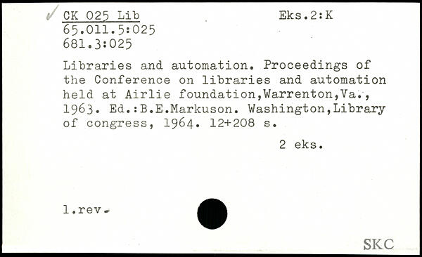 UDK: 025 Lib, 65.011.5:025, 681.3:025