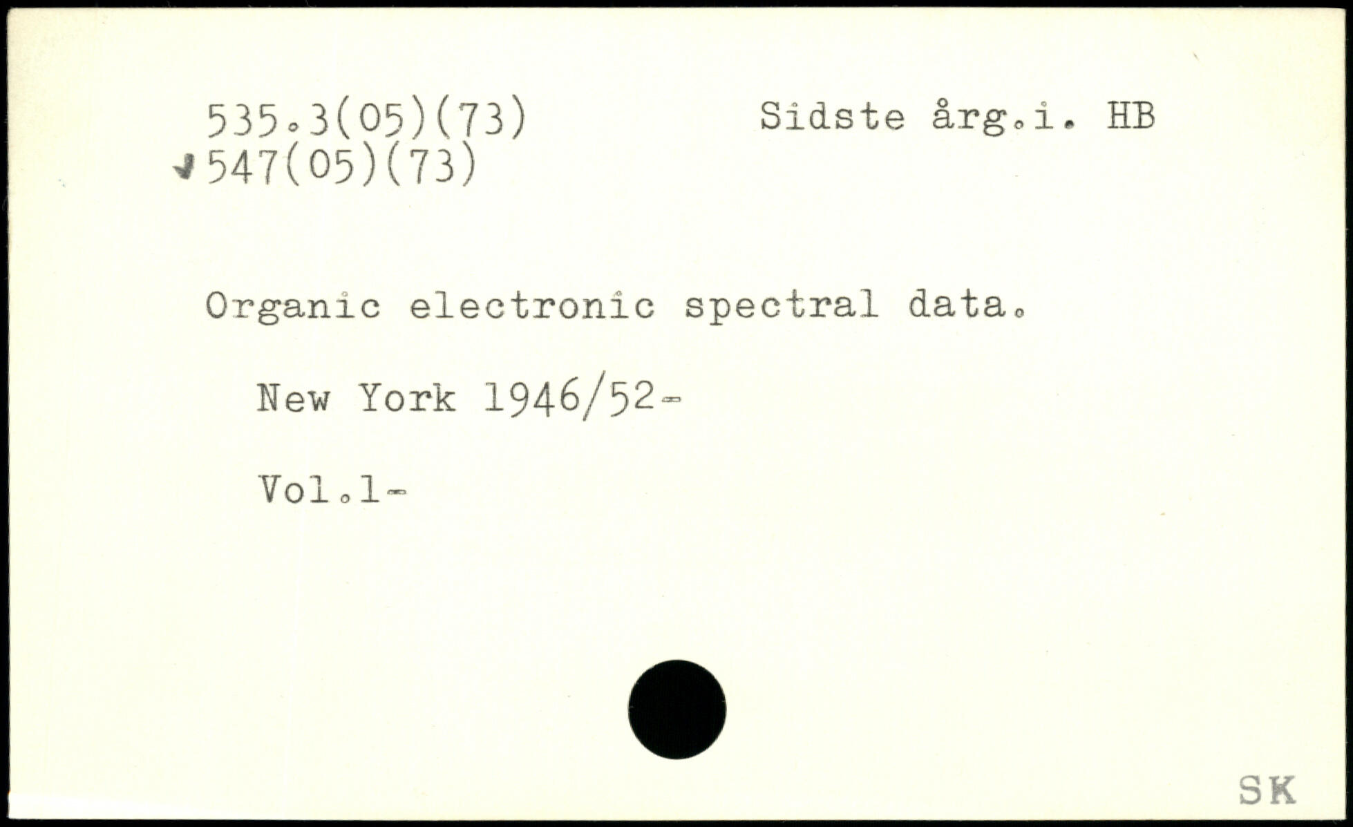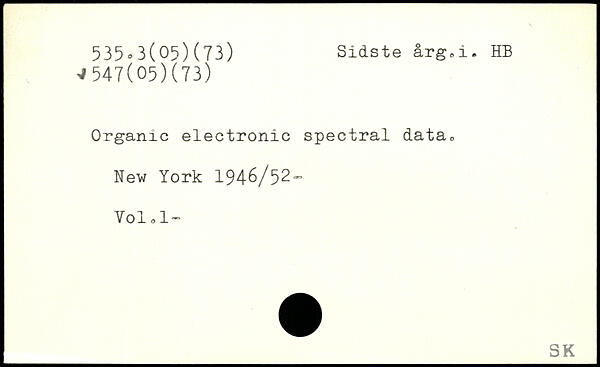 Organic electronic spectral data, New York 194-6/52" Vol.l-