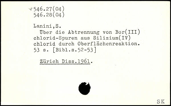 Uber die Abtrennung von Bor(lll) chlorid-Spuren aus Silizium(lV) Chlorid durch Oberflächenreaktion.