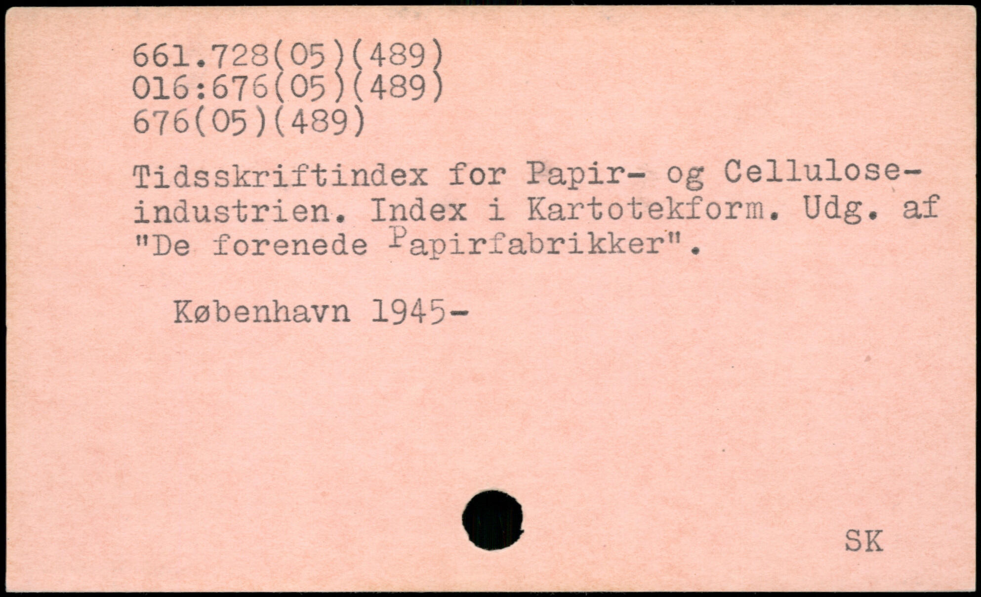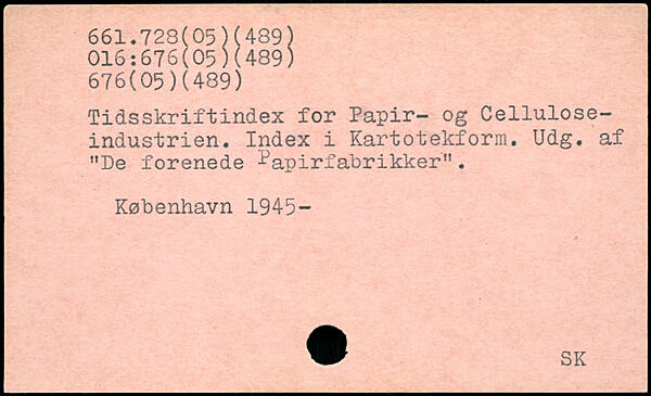 Tidsskriftindex for Papir- og Celluloseindustrien. Index i Kartotekform. Udg. af ”De forenede Papirfabrikker".