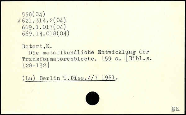 Die me tallkundliche Entwicklung der Transformatorenbleche.