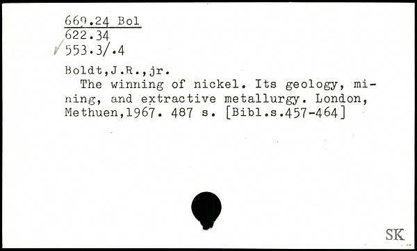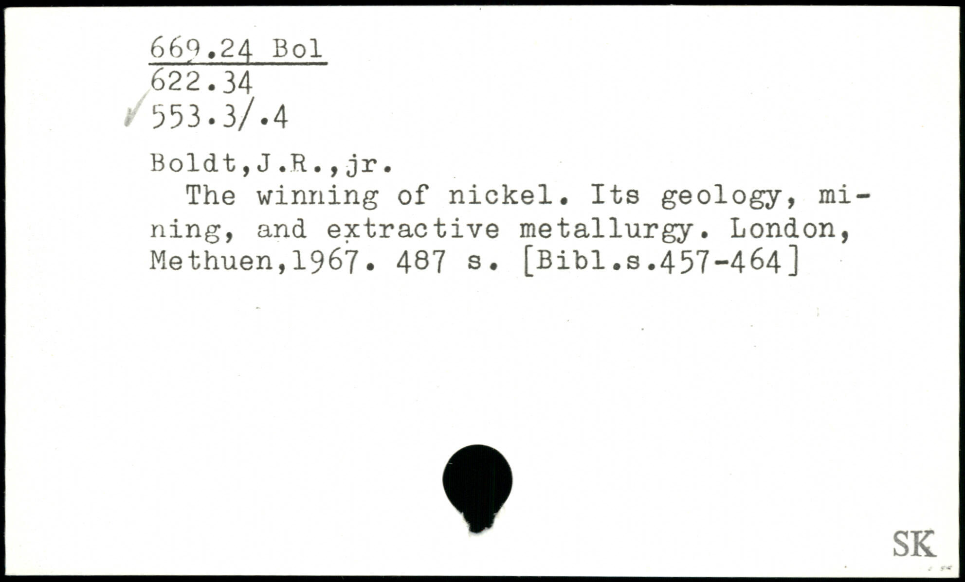 The winning of nickel. Its geology, mining, and extractive metallurgy.