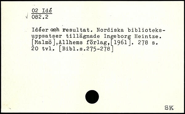 Idéer osjh resultat. Nordiska biblioteks-uppsatser tillägnade Ingeborg Heintze. [Malmö],Allhems förlag,[1961J.
