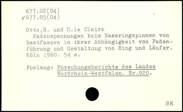 OttOjRo und Mole Claire FadenSpannungen beim Nassringspinnen von Bastfasern in ihrer Abhängigkeit von Faden, führung und Gestaltung von Ring und Läufer.