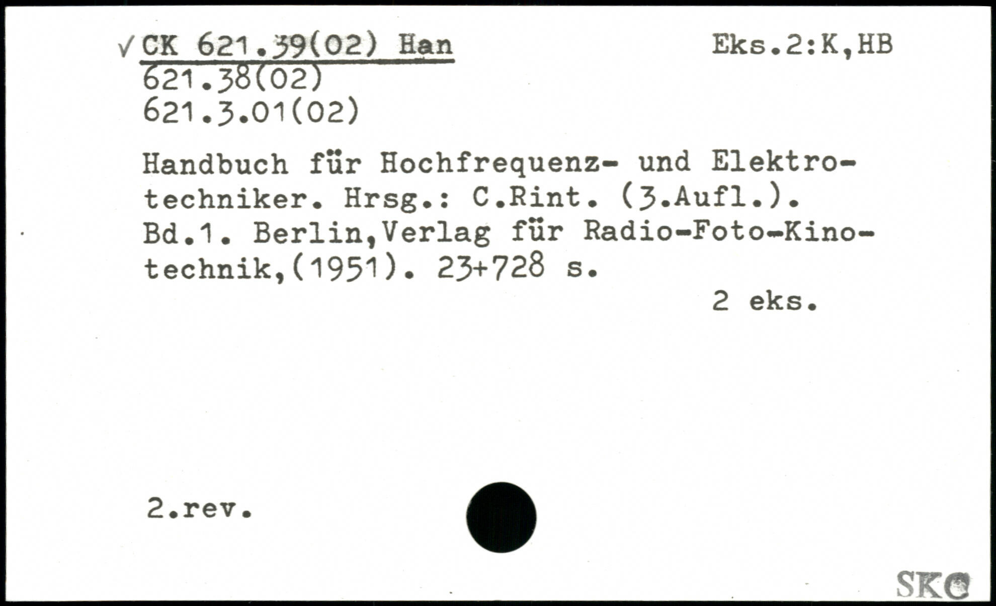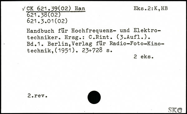Handbuch für Hochfrequenz- und Elektrotechniker. Hrsg.: C.Rint. (