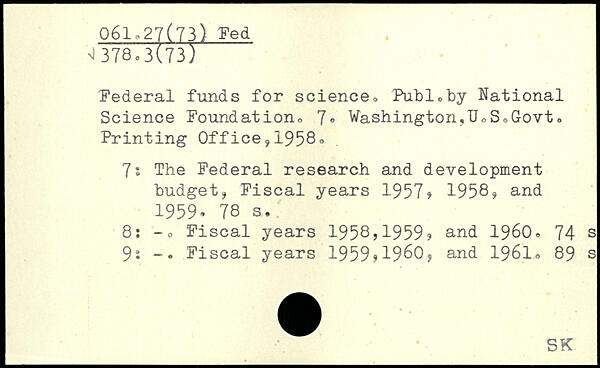 Federal funds for science, Publ,by National Science Foundation, 7.