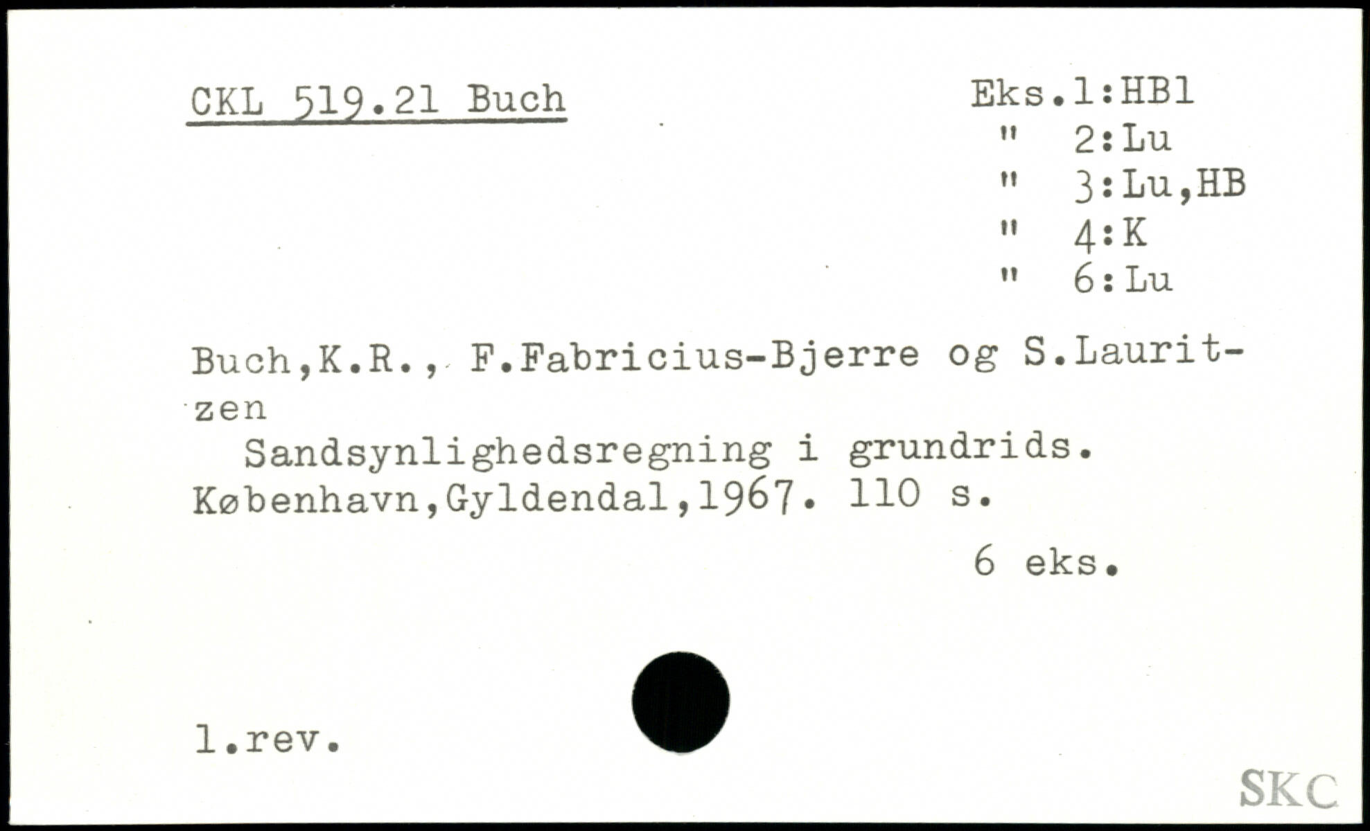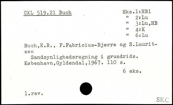 Buch,K.R., F.Fabricius-Bjerre og S.Laurit- z en Sandsynlighedsregning i grundrids.