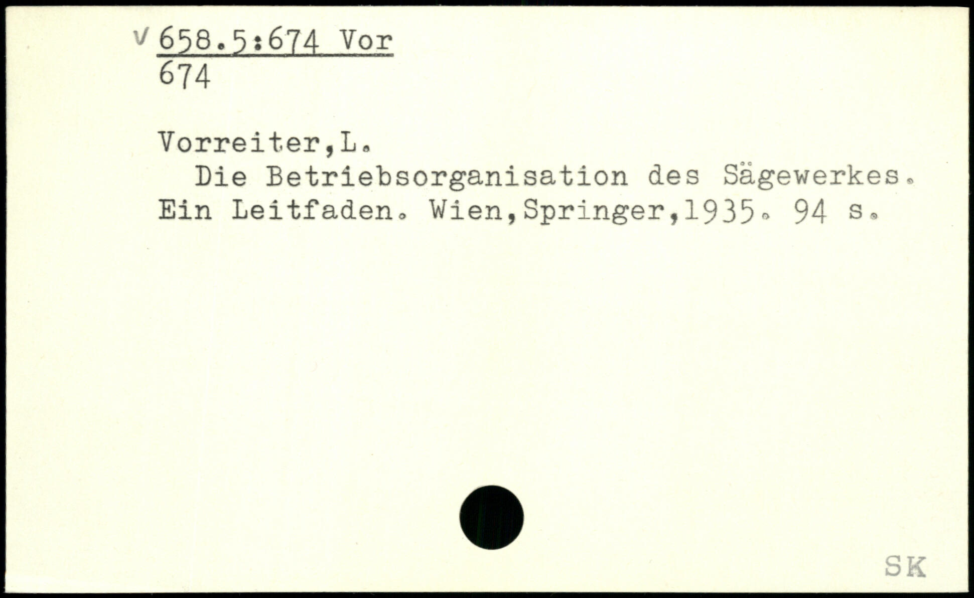 Die Betriebsorganisation des Sägewerkes, Ein Leitfaden, Vien, Springer, 1935. 94 s