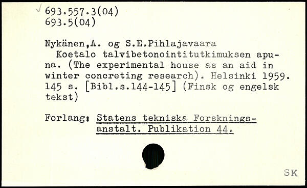 Koetalo talvibetonointitutkimuksen apu-na. (The experimental house as an aid in winter concreting research).