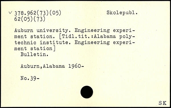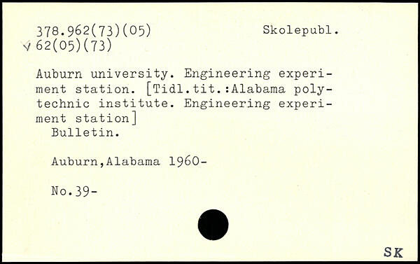 Auburn university. Engineering experiment station. [Tidl.tit.:Alabama polytechnic institute. Engineering experiment station] Bulletin. Auburn,Alabama 1960- No.39-