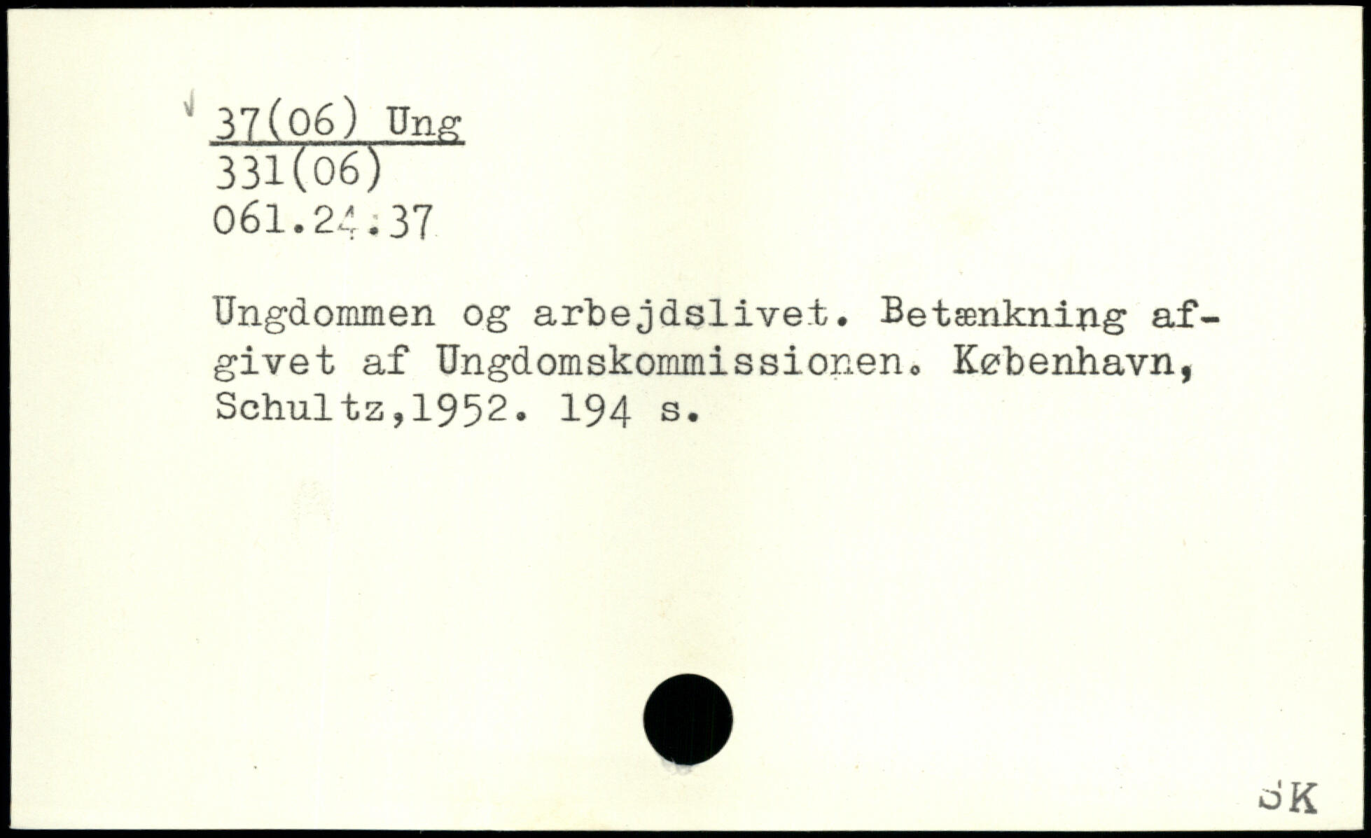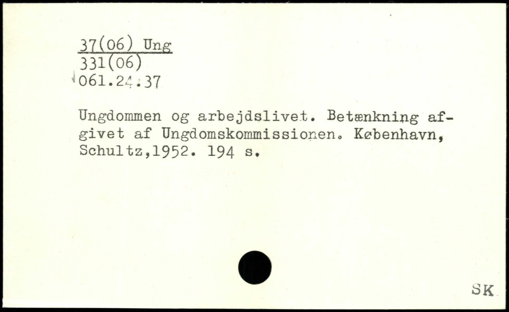 Ungdommen og arbejdslivet. Betænkning afgivet af Ungdomskommissionen.