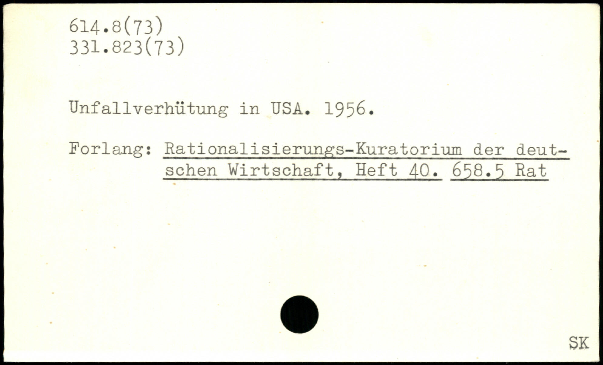 Unfallverhütung in USA. 1956. Forlang: Rationalisierungs-Kuratorium der deutschen Wirtschaft, Heft 40. 658.5 Rat