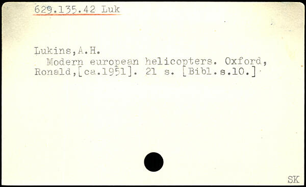 | Lukins,A.H. Modern european helicopters. Oxford, Ronald,Lca.1951].