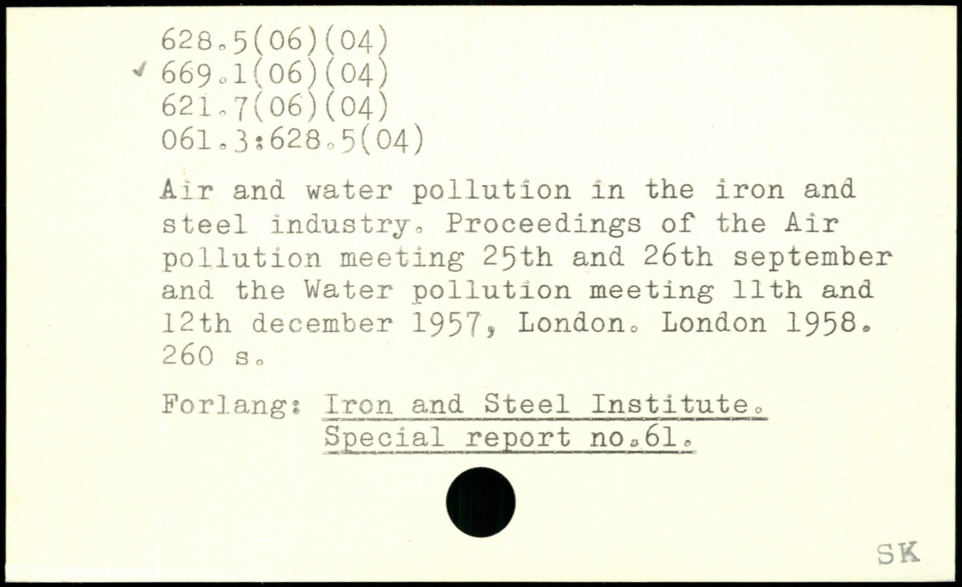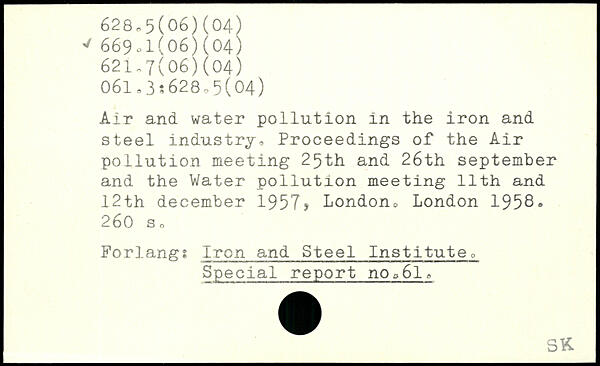 Air and water pollution in the iron and steel industry, Proceedings of the Air pollution meeting 25th and 26th September and the Water pollution meeting 11th and 12th december 1957, London