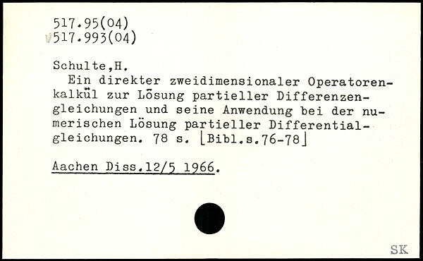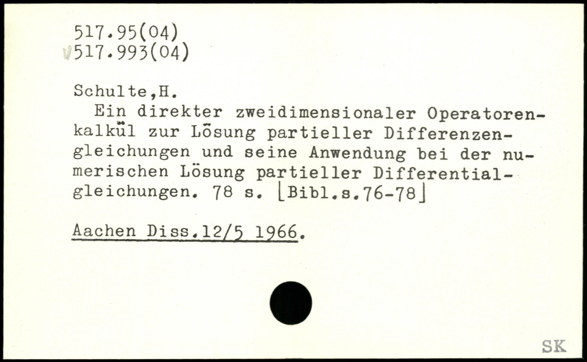 Ein direkter zweidimensionaler Operatorenkalkul zur Losung partieller Differenzengleichungen und seine Anwendung "bei der numerischen Lösung partieller Differentialgleichungen.