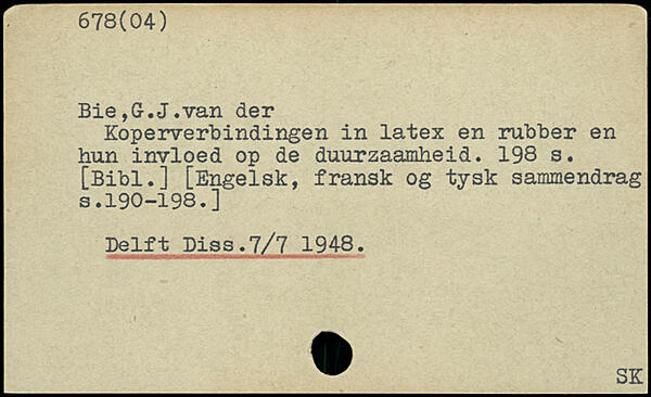 Bie,G.J.van der Koperverbindingen in latex en rubber en hun invloed op de duurzaamheid.